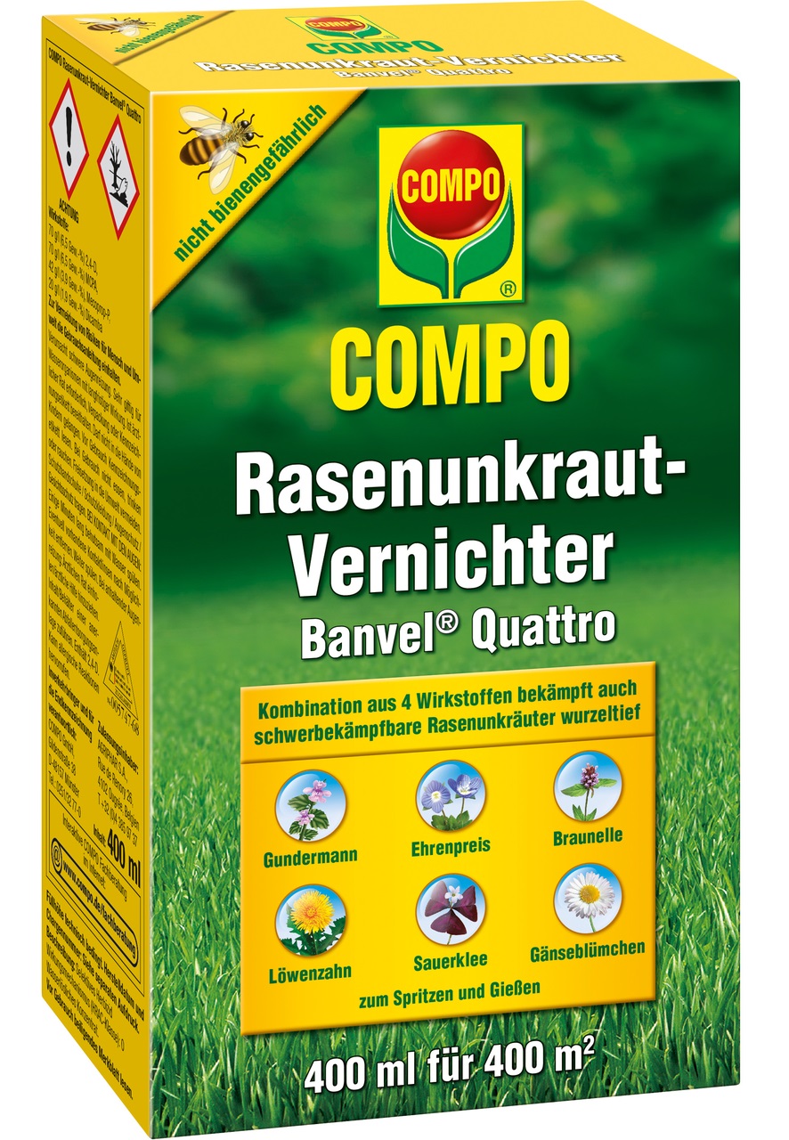 • Kombination aus 4 Wirkstoffen bekämpft auch schwerbekämpfbare Rasenunkräuter wurzeltief